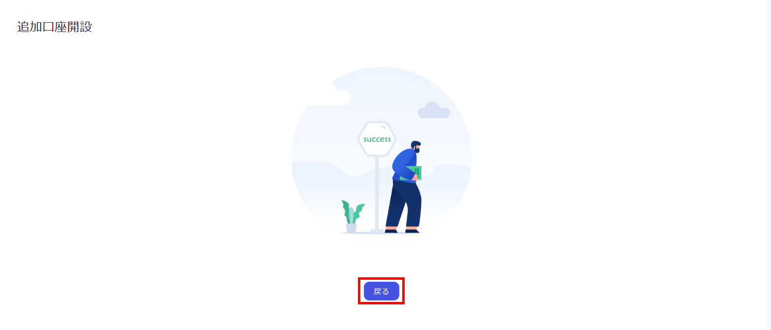 マイページを確認すると、追加口座の情報が表示されます。こちらの口座番号宛にご入金して頂きます。